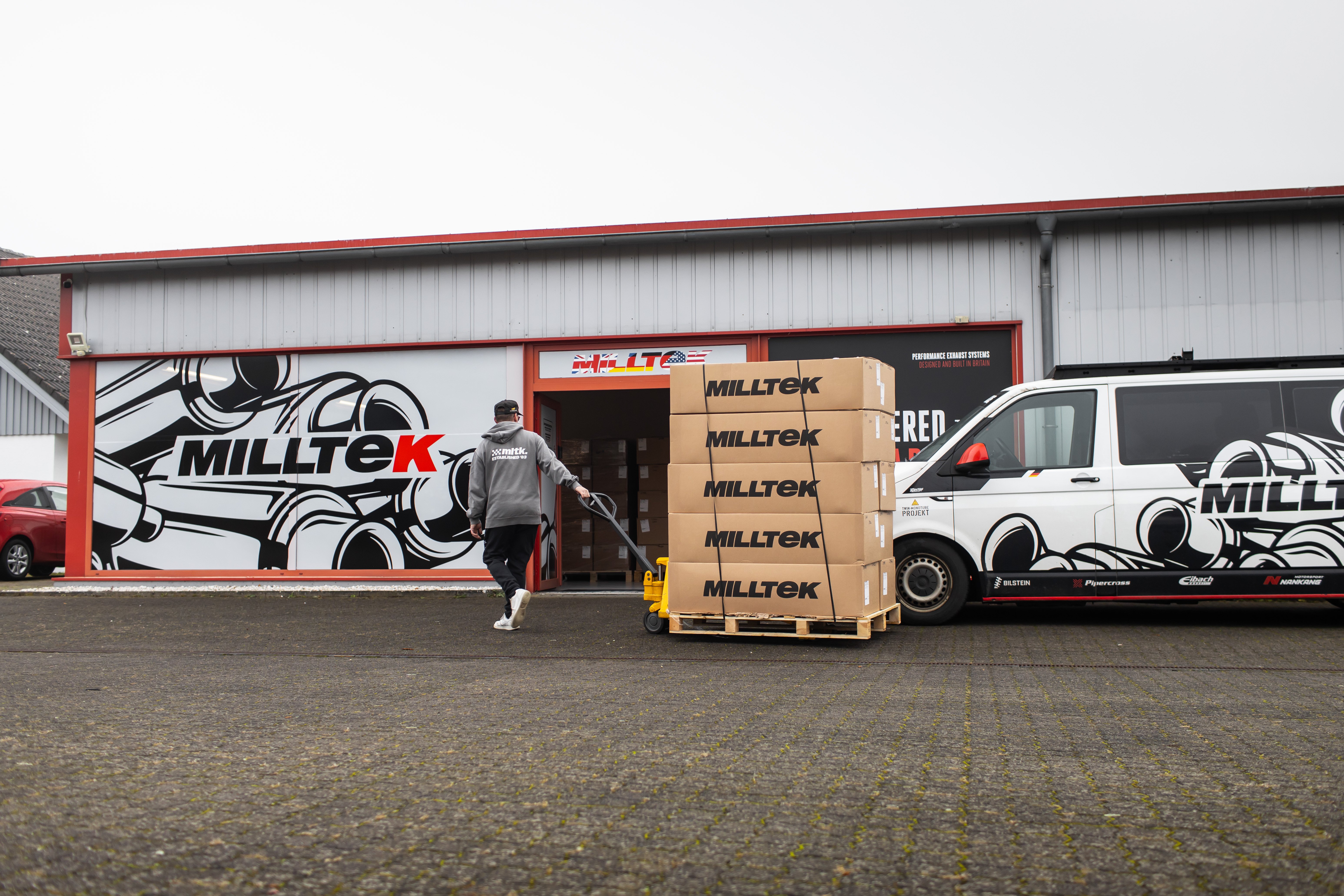 Milltek hat eine Niederlassung inkl. Lager und Entwicklung in Meuspath in unmittelbarer Nähe zum Nürburgring - Beste Bedingungen für Tests! Wir arbeiten bereits seit einigen Jahren mit Milltek zusammen und haben bereits viele Projekte gemeinsam auf die Beine gestellt.